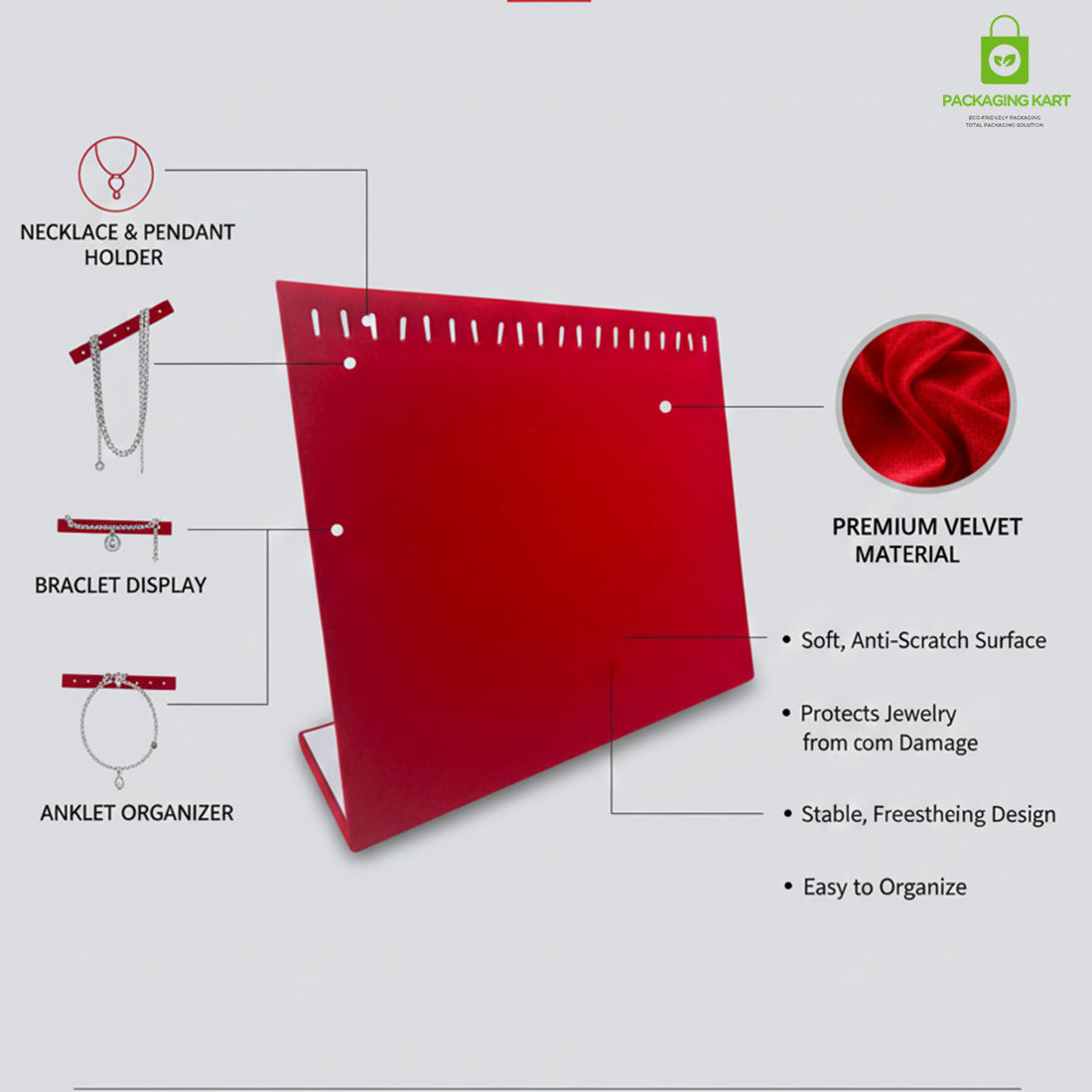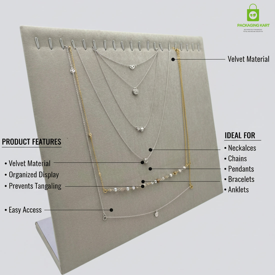 Display your jewellery in the most elegant way with our Chain Pendant Velvet Tray, designed for jewellery shops, exhibitions, and online sellers. Made with premium velvet fabric, this tray gives a soft, luxurious and rich look to your chains and pendants. It keeps jewellery neatly arranged, dust-free, and perfect for store counters, showcases, photoshoots, and videos. The high-quality build ensures durability and long-lasting use. Ideal for retailers, wholesalers, jewellery manufacturers, and resellers who want a premium display solution. Bulk order available at wholesale price.