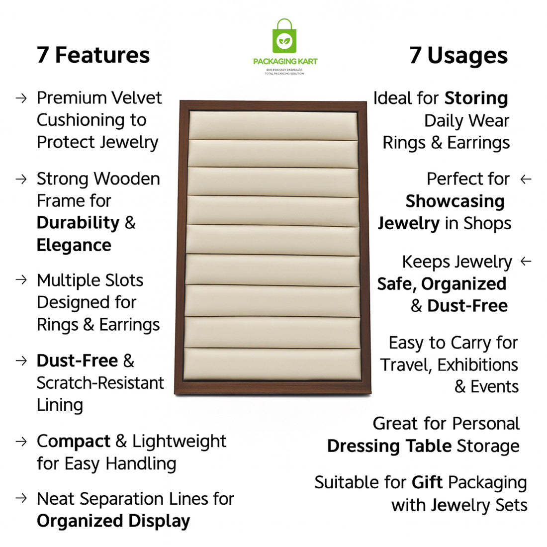 Elegant cream tray designed to display and store earrings & rings in style. Perfect for shops & personal use.