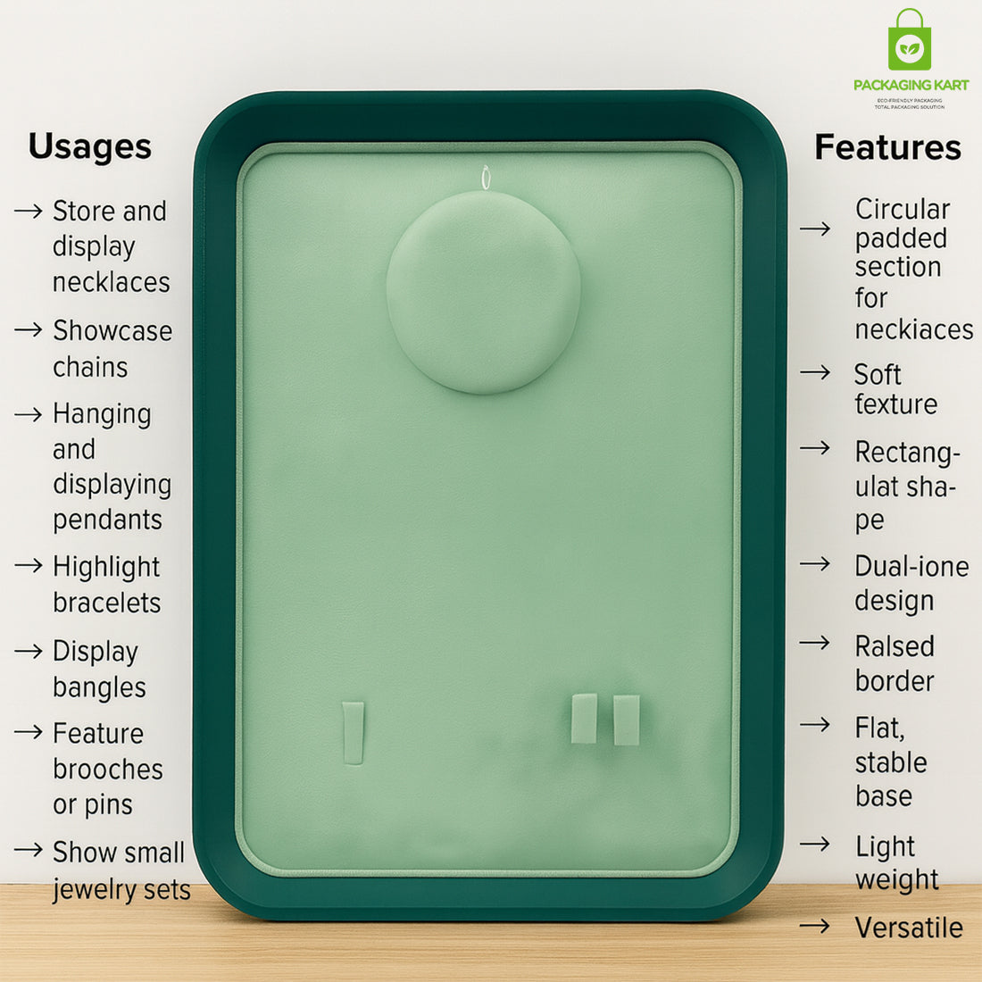 Green Necklace Display Tray | Pendant & Chain Jewellery Organizer