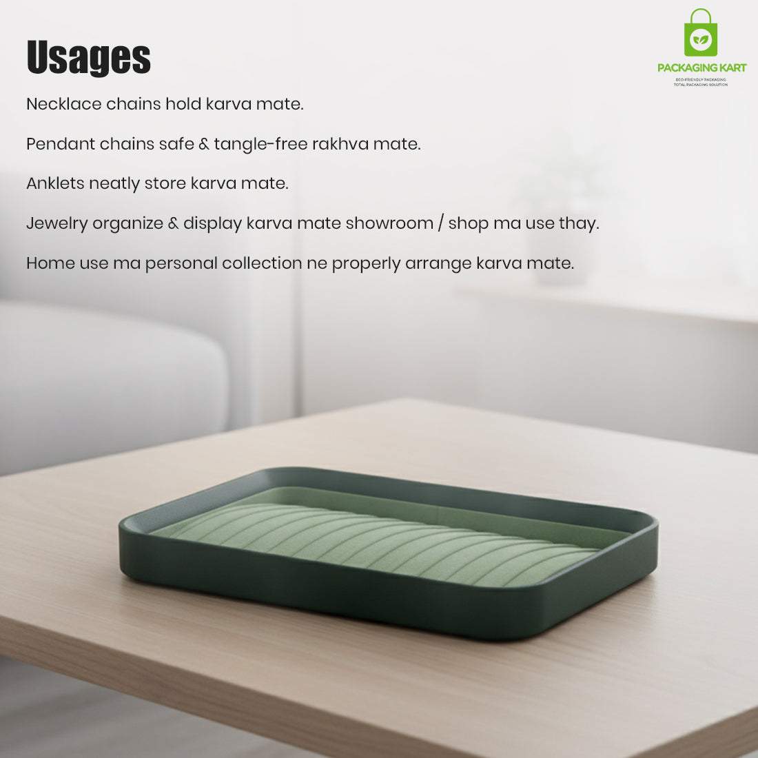 Premium Green Velvet Necklace Chain Tray for Jewelry Display & Storage