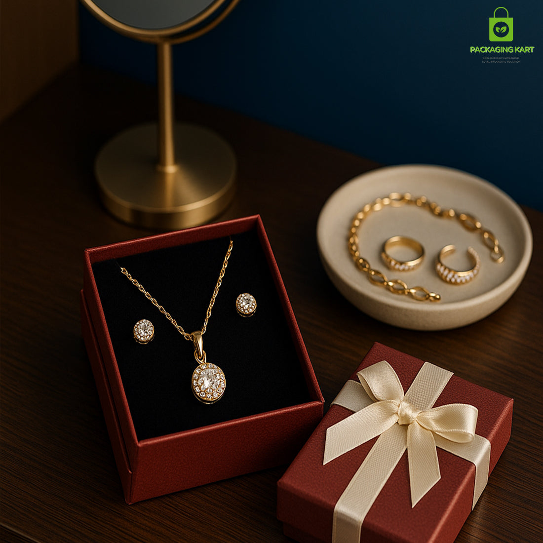 Stylish Dark Red Jewellery Box – Perfect for Rings, Bracelets & Necklaces